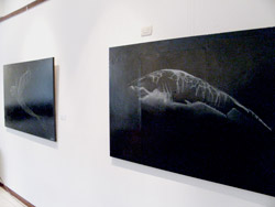 El joven Wesley Acuña, estudiante de Licenciatura en Artes Plásticas en la Universidad de Costa Rica, exhibió una colección de 16 obras llamada “Marea Negra”, todas en técnica mixta.